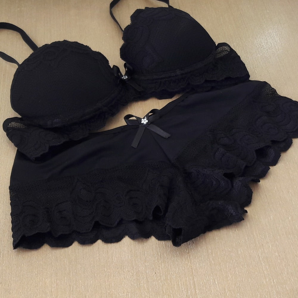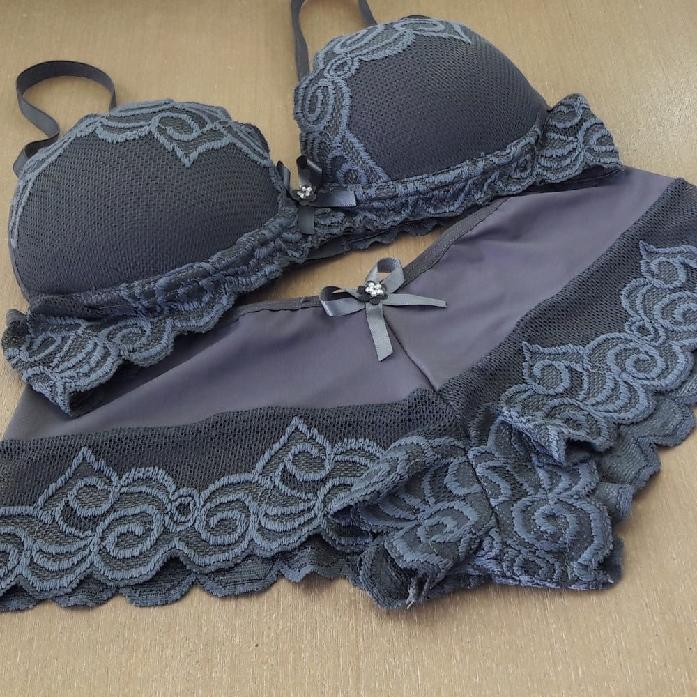 O Conjunto Íris é a definição de charme sofisticado. Ideal para quem busca uma lingerie que una sustentação, sensualidade e um toque romântico.
